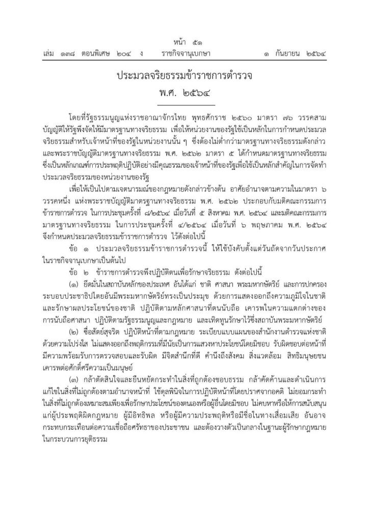 พ.ต.อ.ภัทรพล กมล ผกก.สภ.โนนคูณ แจ้งประมวลจริยธรรมข้าราชการตำรวจ พ.ศ.2564