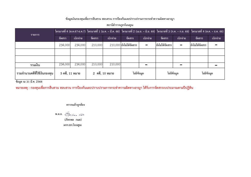 O13 ข้อมูลเงินกองทุนเพื่อการสืบสวน สอบสวน การป้องกันและปราบปราม การกระทำความผิดทางอาญา
